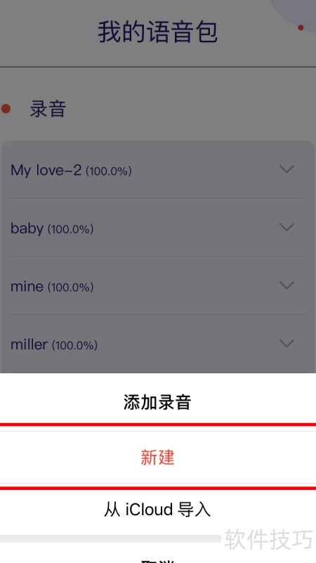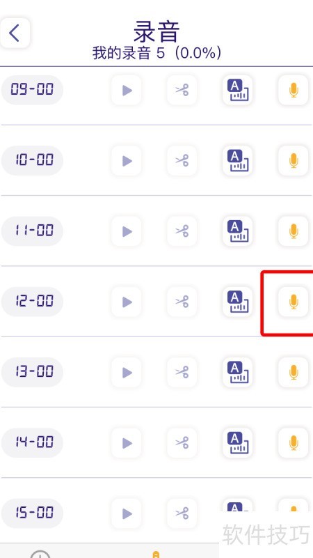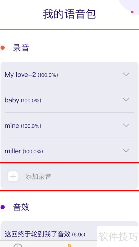 1、 在整点报时软件的我的语音包中,进入录音页面即可找到添加录音功能按钮。