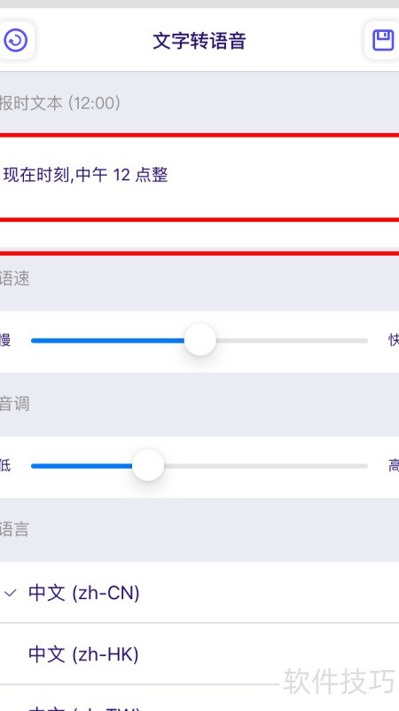 7、 在新页面中完成语音设置,后续操作相同,即可在下个时段听到自定义的报时语音。