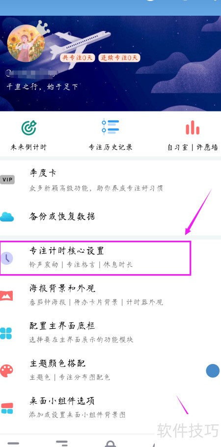 1、 打开应用后,点击右下角我的,进入专注计时核心设置并开启。