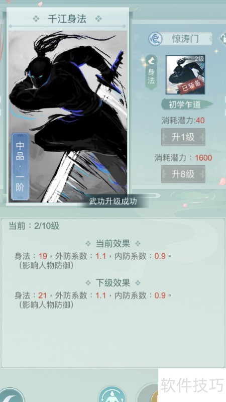 在江湖悠悠中,升级武学需完成指定任务并积累经验。