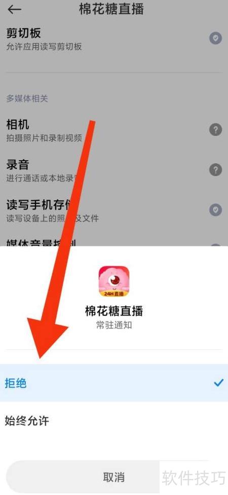 4、 找到常驻通知,勾选拒绝选项即可。