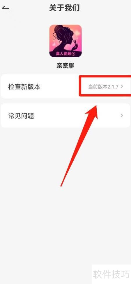 打开亲密聊APP,进入设置页面,点击关于软件即可查看当前版本号信息。