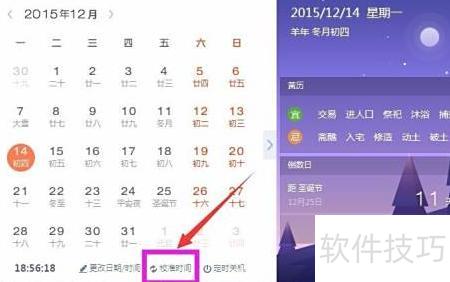 2、 打开时间面板后,下方可见时间校准选项,具体所示。