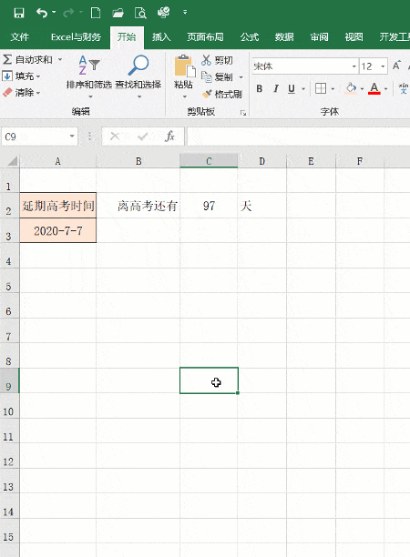 1、 在C2单元格中输入公式:=A3-TODAY(),按回车确认后即可显示距离高考的剩余天数。TODAY()函数会自动获取当前日期,例如2020年4月1日,用高考日期减去当前日期,得出结果即为所剩天数。