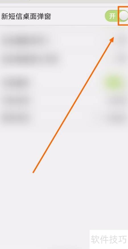6、 当新短信桌面弹窗右侧显示关时,问题即已解决。