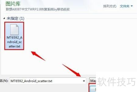 6、 在配置文件中定位并选中此前解压出的联想A808T第三方recovery中的文件,随后点击确认按钮进行打开操作,具体界面可参考附图所示。