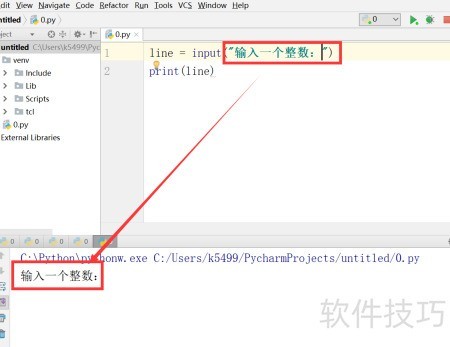 4、 当用户输入数据并按下回车键后,程序结束等待输入状态,继续执行后续的打印语句。