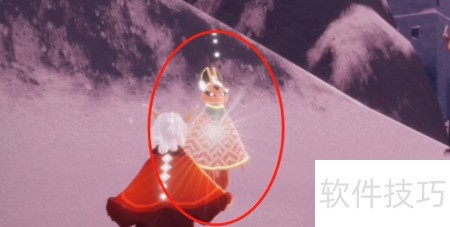 3、 循着指引触碰回忆,在山脚处找到戴兔子面具的先祖,点燃蜡烛便可将其唤醒并解锁。