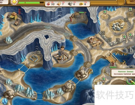 4、 先清除左上石笋,再收集右下锤子,随后修复左侧道路。