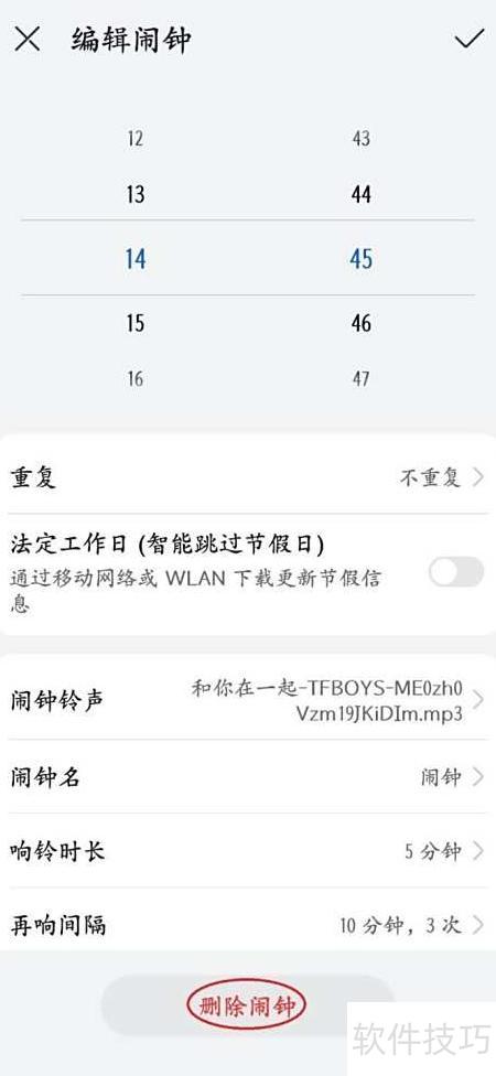 4、 进入闹钟详情页,选择删除闹钟功能。