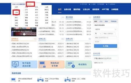 3、 进入交通安全综合服务平台,查找红色文本框所示位置。