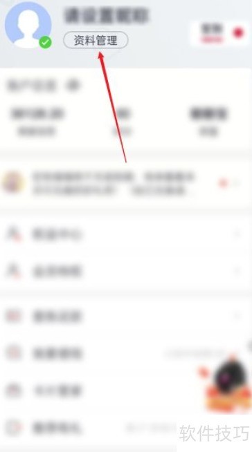2、 进入个人中心,点击顶部资料管理选项。