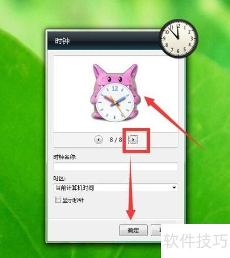 7、 点击前后三角形可切换不同时钟样式,选择心仪款式后确认即可。