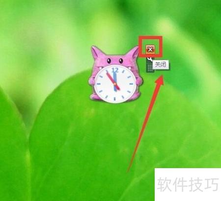 9、 若要关闭电脑桌面上的时钟小工具,只需将鼠标移至时钟位置,待工具栏出现后,点击其中的关闭按钮即可完成操作。