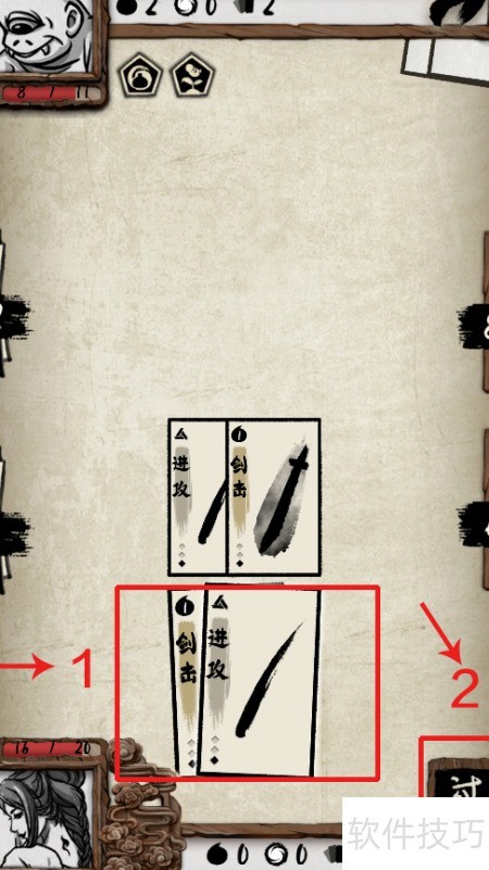 2、 进入卡牌挑战后,拖动卡牌发起攻击,无法出招时点击右下角过即可。