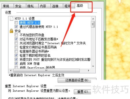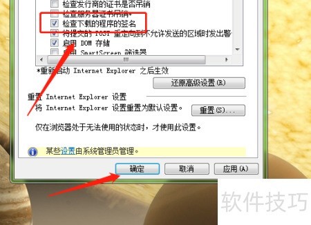 在Internet选项里查看下载程序的数字签名验证方法。