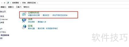 1、 进入控制面板,选择时钟语言区域,点击日期和时间进行设置。