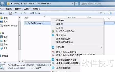 2、 右键点击GetSetTime.cmd文件,选择编辑选项进行操作。