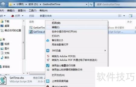 5、 右键点击SetTime.vbs文件,选择编辑选项进行操作。