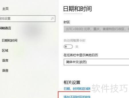 3、 进入时间和语言设置,于日期时间界面选择添加不同时区的时钟选项。