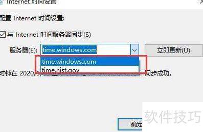 5、 打开Internet时间设置,勾选与Internet时间服务器同步,点击下拉菜单,选择如time.windows.com等时间服务器,完成配置后保存即可。