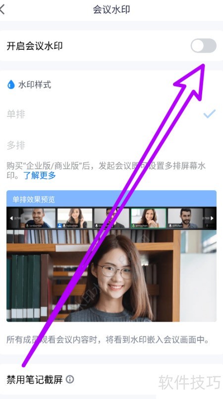3、 开启会议水印功能