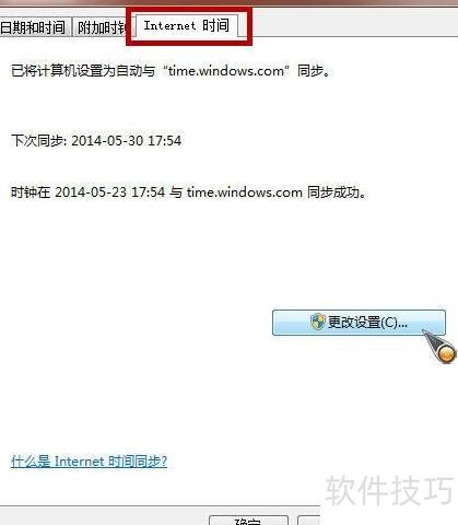 2、 在弹出的窗口里选择Internet时间选项,然后点击更改设置按钮进行配置。