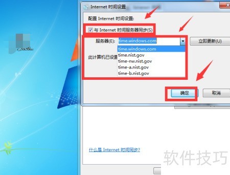 5、 勾选同步网络时间,选择服务器后确认即可完成设置。