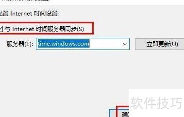 5、 勾选与Internet时间服务器同步,然后点击确定按钮完成设置。