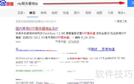 1、 打开浏览器访问百度,搜索ntp服务器地址即可获取相关信息。