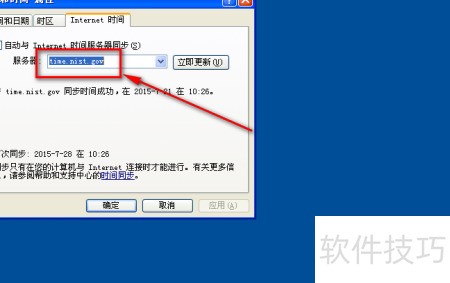 4、 将获取的时间服务器地址复制到时间设置面板中服务器后的输入框内,所示完成配置。