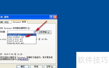 14、 点击服务器:右侧的输入框,打开下拉菜单,查找类似Windows Time的时间服务器选项,检查当前是否可连接官方服务器进行时间同步更新。