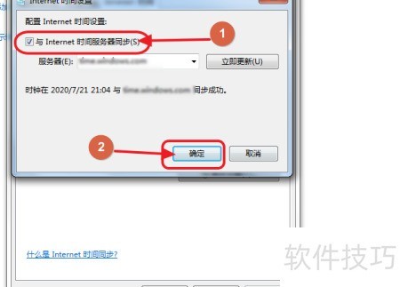 7、 勾选与Internet时间服务器同步并点击确定即可完成设置。