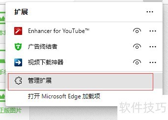 2、 弹窗中点击管理扩展即可