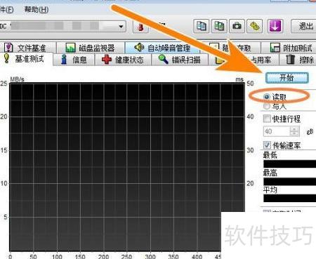 3、 在基准测试界面,选择读取选项后点击运行,即可开始检测硬盘的读取速度。