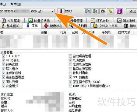 1、 打开HD Tune Pro软件,若电脑装有多个硬盘,需在指定下拉框中选择待检测的硬盘设备。