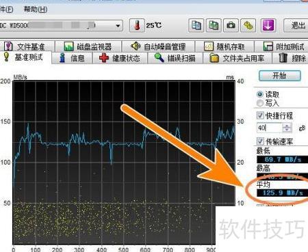 4、 测试结束后,该硬盘平均读取速度测得为125.9MB/s。