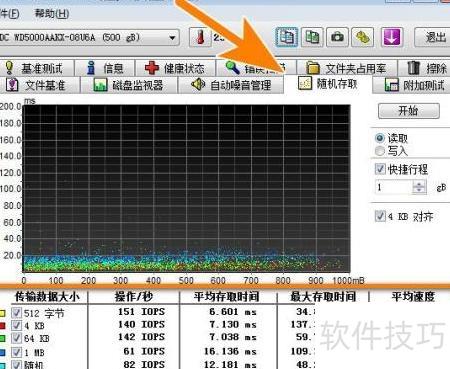 7、 该工具还提供随机存取与文件基准的读写速度测试功能,用户可同时进行多项测试。