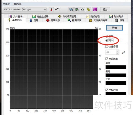 4、 刚才测试了读取速度,接下来进行写入速度的测试。