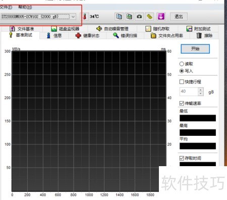 5、 完成写入速度测试后,可通过下拉菜单切换硬盘继续检测。