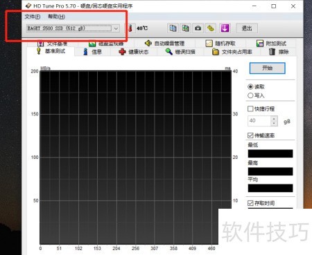 2、 打开固态硬盘管理软件,进入基准测试功能页面。