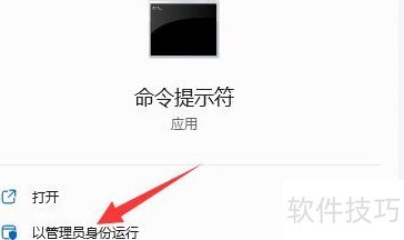 2、 右键点击命令提示符并选择以管理员身份运行。