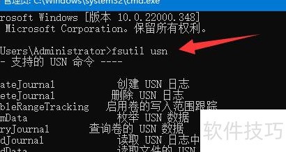 3、 输入fsutil usn后按回车,可查看该命令的详细信息。
