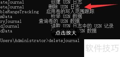 4、 输入deletejournal并按回车,即可清除usn日志。
