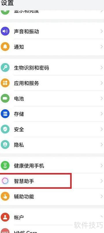 1、 打开手机设置,进入后找到智慧助手功能选项。