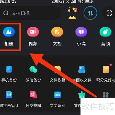 2、 打开百度网盘,进入首页后点击相册选项。