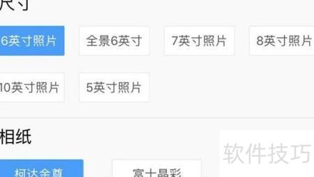 5、 页面跳转后,请按个人需求选择合适的照片尺寸、相纸类型及材质。
