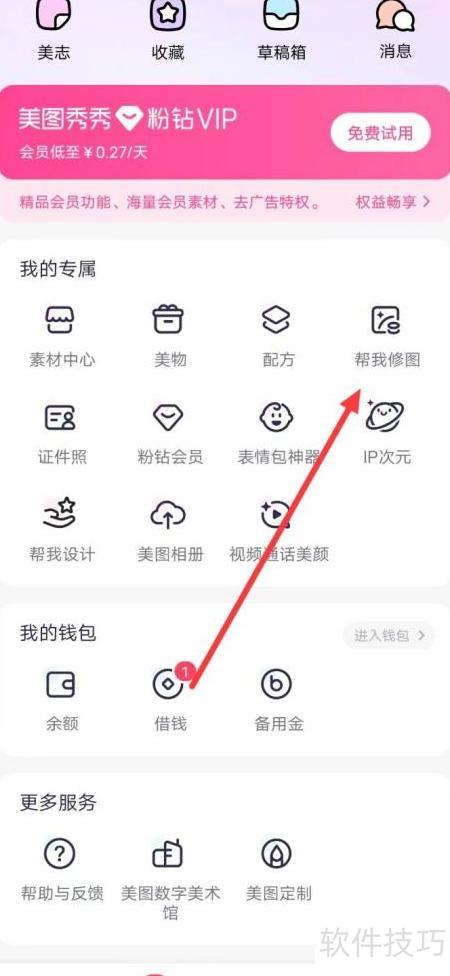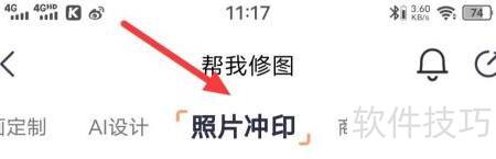 美图秀秀中照片冲印功能在哪个位置? 、 点击帮我修图页面中的照片冲印即可进入。 ...