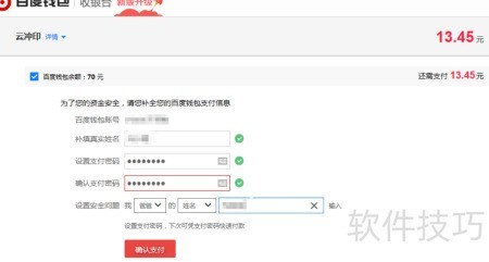 10、 在百度钱包收银台 云冲印页面,选择支付方式后点击确定支付,即可进入支付流程。