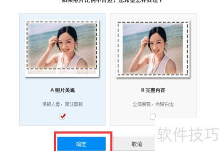 9、 此时会弹出照片处理方式窗口,可根据照片比例选择合适的处理方法,设置完成后点击确定即可。